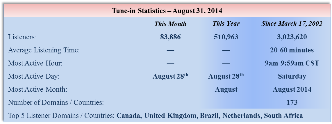 Website, Tune-in, Sermon Download & Book Distribution - Summary Statistics