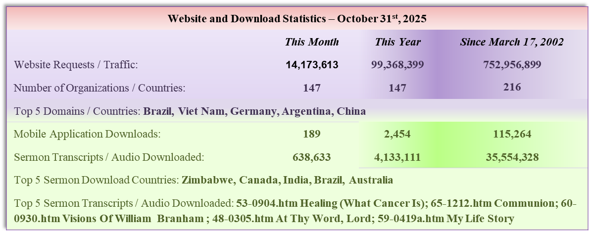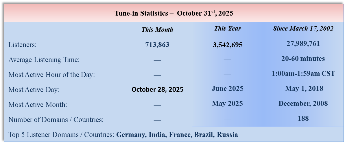 Website, Tune-in, Sermon Download & Book Distribution - Summary Statistics